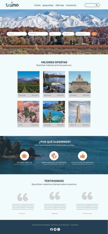 Creación de página web para la empresa de turimos TRAMO.