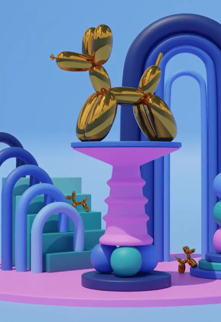 Animación de objetos en 3D, donde se juega con formas, luces y movimientos.